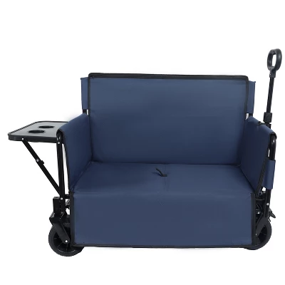 Rear-Mounted Folding Tabletop for Folding Cart/Vehicle Type:- Holds 2 Drinks!Securely attaches to the rear of your folding cart, wagon. Features a convenient folding tabletop that stows away when not needed.Integrated dual cup holders securely keep two drinks (cups, bottles, cans) upright.Perfect for keeping beverages, or small items within easy reach during transport, picnics, events, or work.Multi-Functional Seat Wagon – UNIQUE SEAT CONVERSION – Doubles as a secure seating solution with 500lb capacity. Reinforced frame and padded base safely support children or adults. Side zippers allow easy entry/exit, ideal for parks, camping, or event venues. Perfect for tired little legs, elderly companions, or impromptu seating at outdoor gatherings.Heavy-Duty Collapsible Wagon – Built with 1.2mm reinforced carbon steel frame supporting up to 500lbs. 180L (6.4 cu.ft) organized cargo space perfect for grocery hauls, apartment moves, or outdoor gear. Reduces heavy-lifting strain with secure item transportation.All-Terrain 360 Wheel System – Dual front swivel wheels enable nimble maneuvering on any surface. Equipped with double bearings for enhanced load-bearing and safety, this wagon ensures smooth transport.Smart Self-Locking Handle – 3- position adjustable handle tilts 90. Automatically lifts clear of ground when released, eliminating trip hazards while maintaining clean lines.